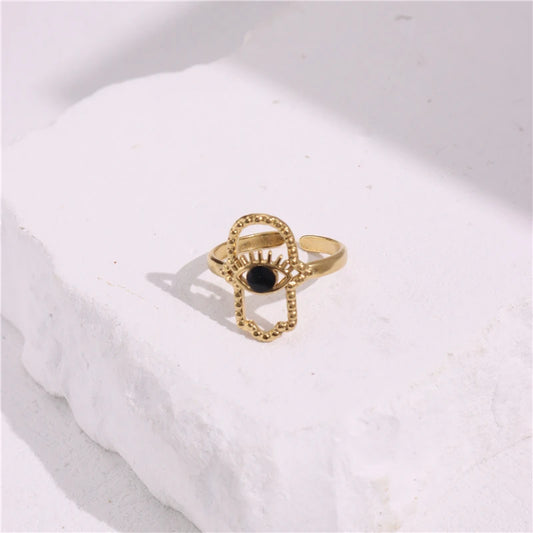 Sold outBlack Eye Hamsa Ring