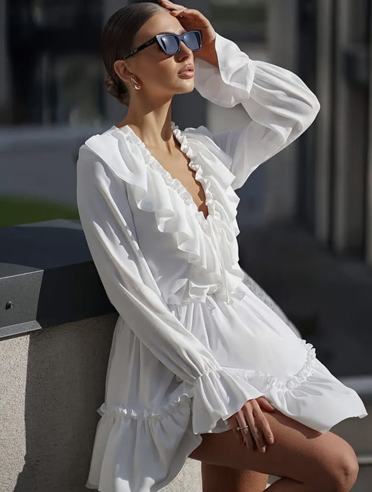 Boho Waves Crochet Mini Dress