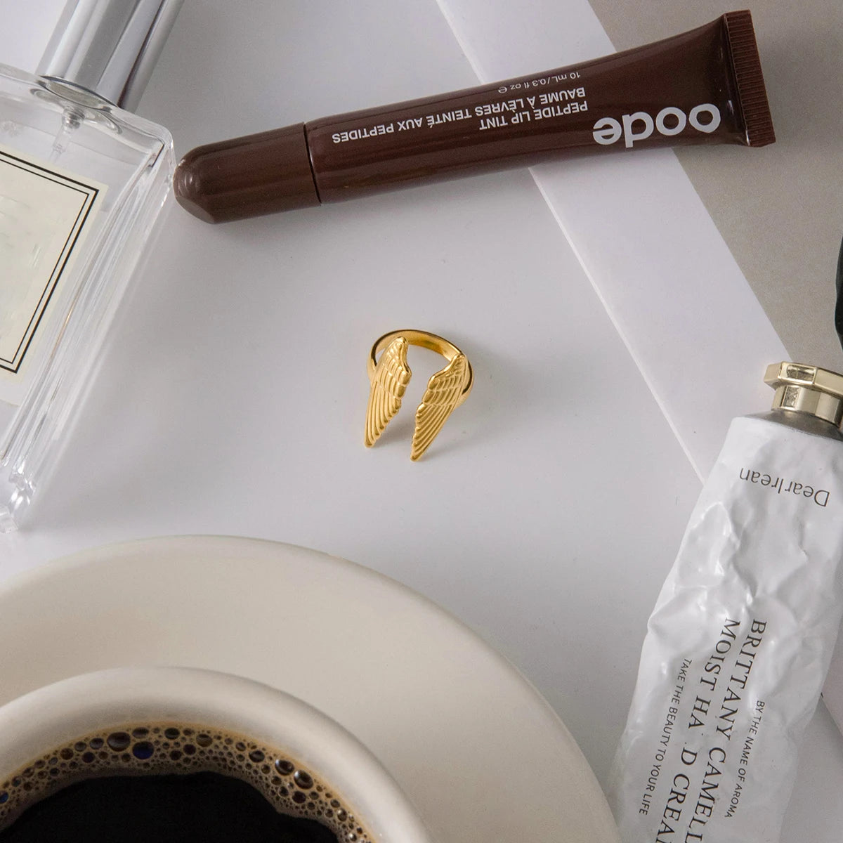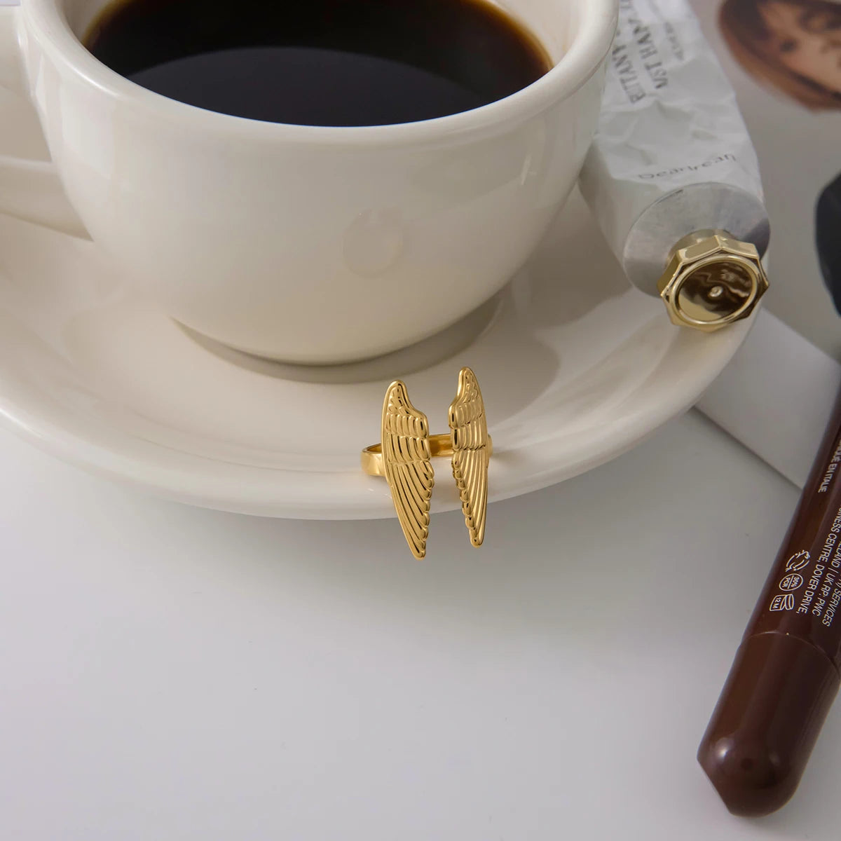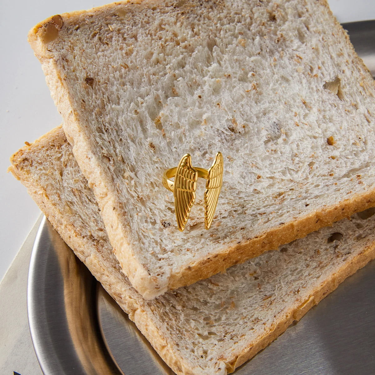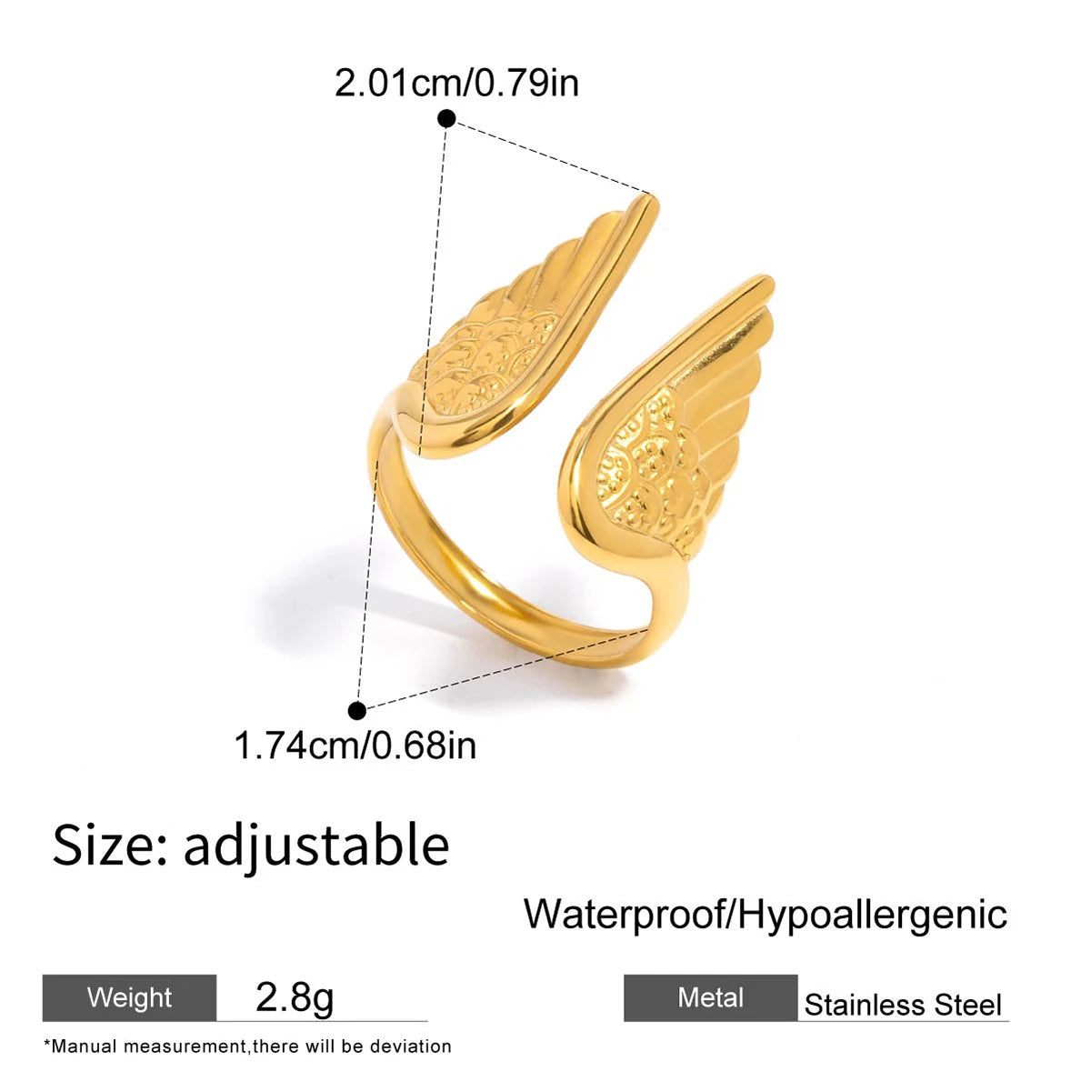 The Celestia Wings Rings embody freedom, strength, and divine elegance. Featuring sculpted wing designs in polished gold-tone stainless steel, this collection represents both grace and power. Adjustable for a perfect fit, each ring is a statement of individuality—whether stacked together for a bold look or worn solo as a symbol of your inner spirit.